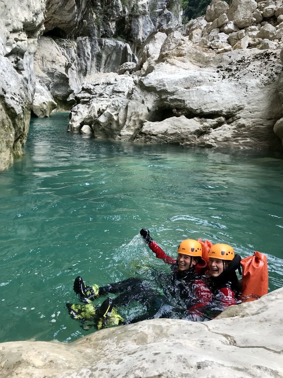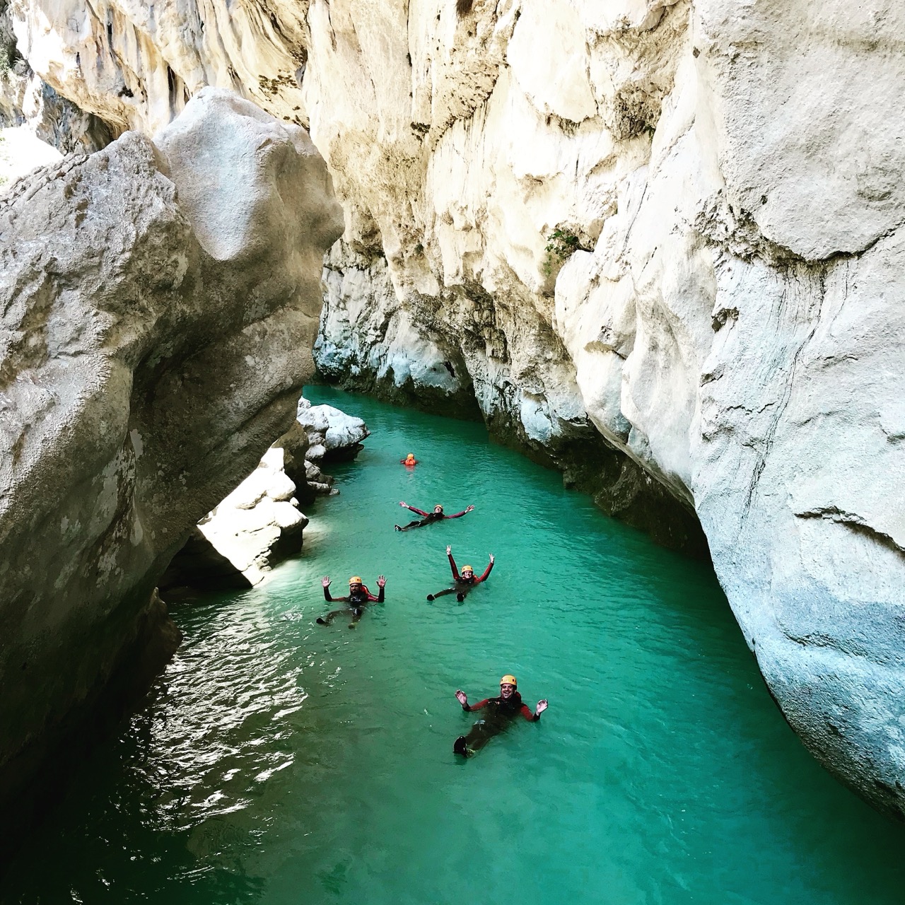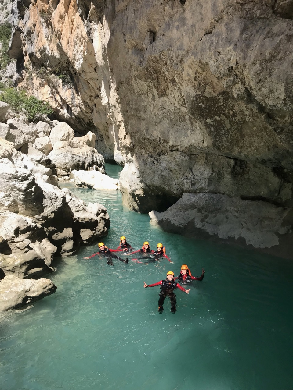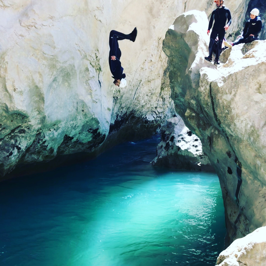 Le canyon de la Ferné est situé au cœur des gorges du Verdon avec ses falaises majestueuses. Il est idéal de le découvrir entre amis ou en famille sportive. Il commence par un enchaînement de sept rappels dans un canyon sec. Vous y trouverez une grande verticale de 80m (divisée en trois rappels) qui se terminera dans les eaux turquoises du Verdon. Le pique-nique se fera sur une très belle plage dont l’accès est unique par le canyon (absence de randonneurs et de pédalos!). Après le déjeuner, nous enchaînerons sur une magnifique randonnée aquatique de deux heures, entourée d’un décor gigantesque. C’est un parcours qui comporte de la nage en eau vive, nous pourrons aller chercher plus d’adrénaline en sautant jusqu’à 8 mètres de hauteur pour ceux qui le désirent. Il faudra garder un peu d’énergie pour les 45 minutes de remontée à pied. C’est notre parcours sportif favori à la journée !