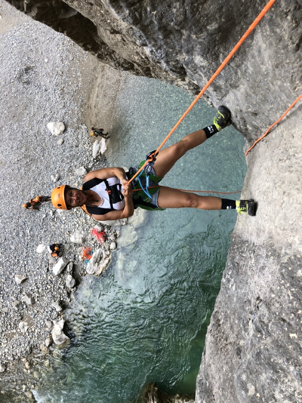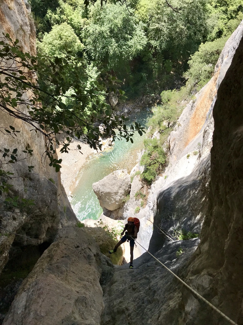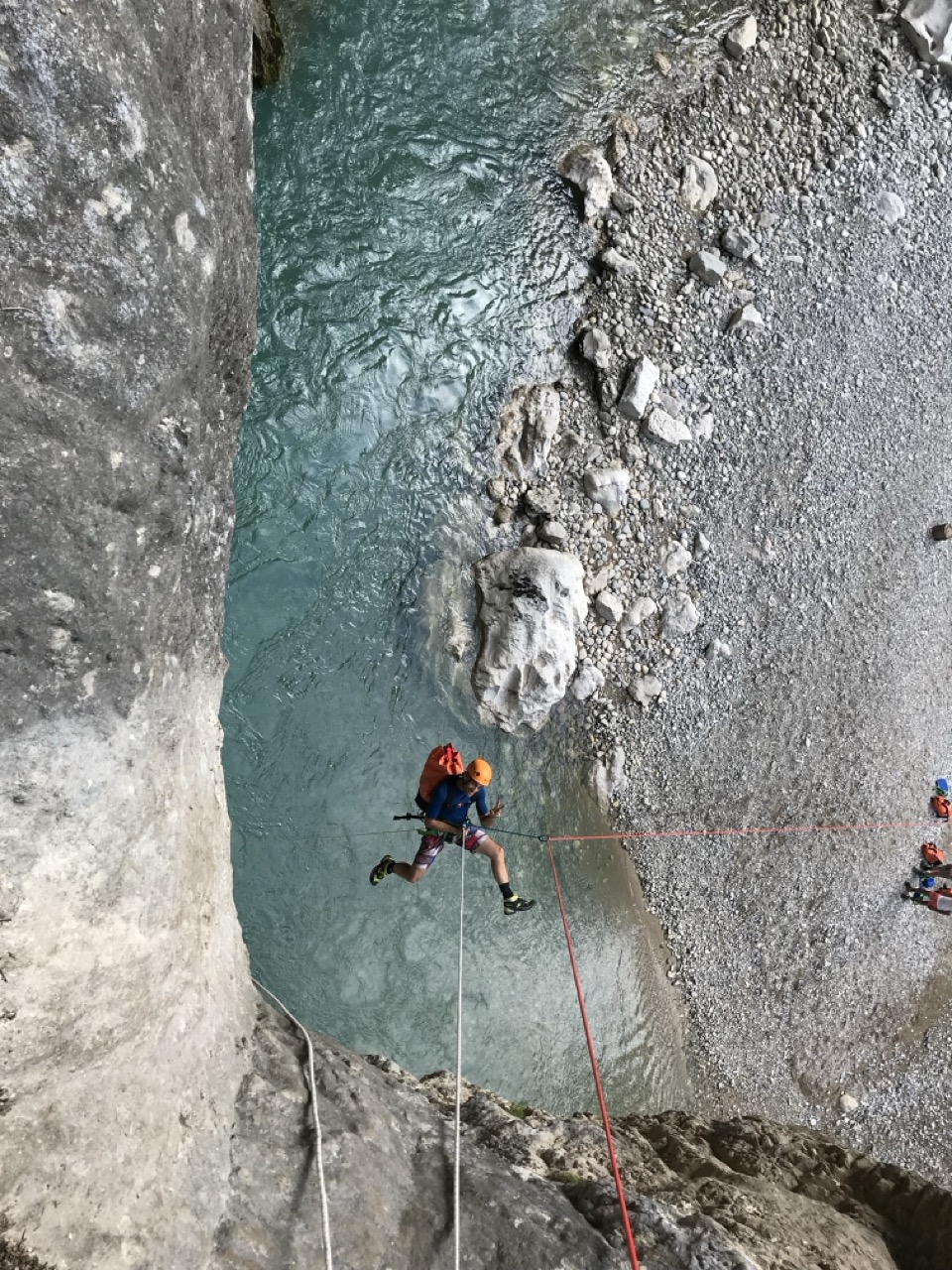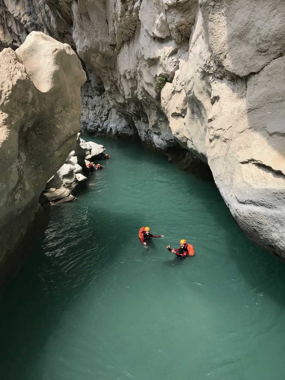Le canyon de la Ferné est situé au cœur des gorges du Verdon avec ses falaises majestueuses. Il est idéal de le découvrir entre amis ou en famille sportive. Il commence par un enchaînement de sept rappels dans un canyon sec. Vous y trouverez une grande verticale de 80m (divisée en trois rappels) qui se terminera dans les eaux turquoises du Verdon. Le pique-nique se fera sur une très belle plage dont l’accès est unique par le canyon (absence de randonneurs et de pédalos!). Après le déjeuner, nous enchaînerons sur une magnifique randonnée aquatique de deux heures, entourée d’un décor gigantesque. C’est un parcours qui comporte de la nage en eau vive, nous pourrons aller chercher plus d’adrénaline en sautant jusqu’à 8 mètres de hauteur pour ceux qui le désirent. Il faudra garder un peu d’énergie pour les 45 minutes de remontée à pied. C’est notre parcours sportif favori à la journée !