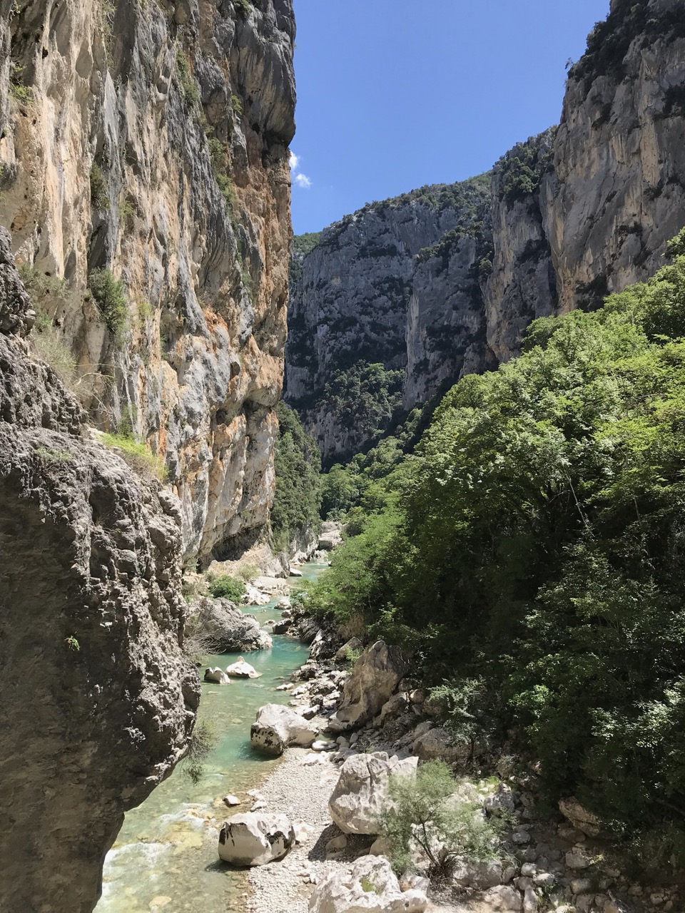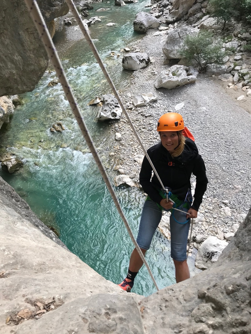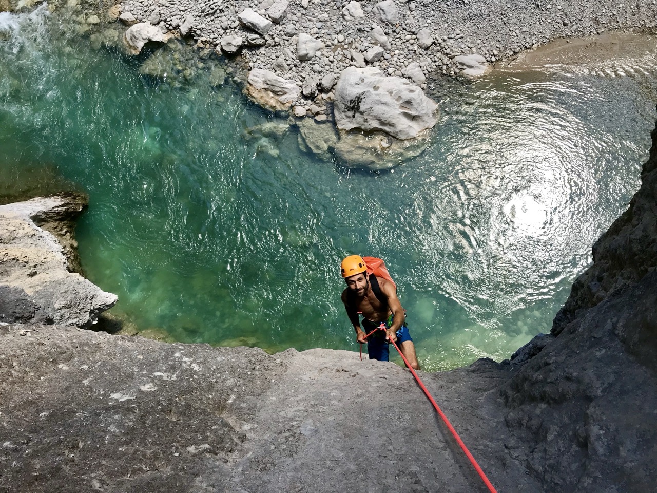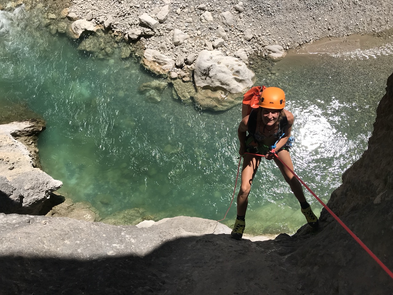 Le canyon de la Ferné est situé au cœur des gorges du Verdon avec ses falaises majestueuses. Il est idéal de le découvrir entre amis ou en famille sportive. Il commence par un enchaînement de sept rappels dans un canyon sec. Vous y trouverez une grande verticale de 80m (divisée en trois rappels) qui se terminera dans les eaux turquoises du Verdon. Le pique-nique se fera sur une très belle plage dont l’accès est unique par le canyon (absence de randonneurs et de pédalos!). Après le déjeuner, nous enchaînerons sur une magnifique randonnée aquatique de deux heures, entourée d’un décor gigantesque. C’est un parcours qui comporte de la nage en eau vive, nous pourrons aller chercher plus d’adrénaline en sautant jusqu’à 8 mètres de hauteur pour ceux qui le désirent. Il faudra garder un peu d’énergie pour les 45 minutes de remontée à pied. C’est notre parcours sportif favori à la journée !