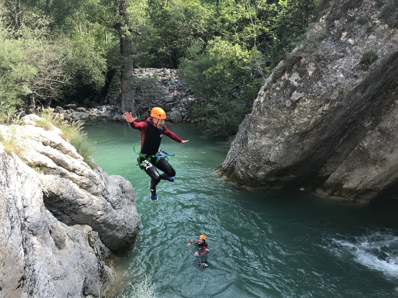 Le Canyon du St Auban est l’un des plus sportif à la demi-journée ! Vous plongerez de vasque en vasque dans la gorge étroite de la Clue. Il a un caractère très aquatique, l’eau y est fraiche. Vous y trouverez un bel enchaînement d’obstacles et de magnifiques sauts jusqu’à 6m (facultatif), des descentes en rappels, des toboggans et une belle tyrolienne de 35 mètres qui atterrit dans l’eau. Un niveau sportif correct est exigé pour franchir ses nombreux obstacles. Il se situe dans les Alpes Maritimes à Saint Auban à la limite des Alpes de Hautes Provence. Ce canyon est réglementé, il est praticable les jours suivants : Lundi, Mercredi, Vendredi et Dimanche.