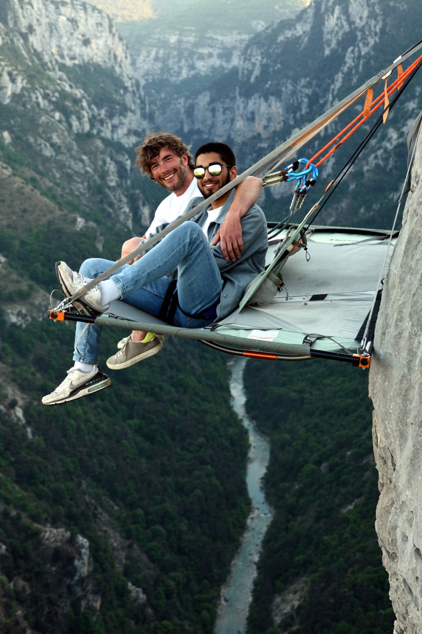 Nous commencerons la descente en rappel dans l’après-midi puis nous attaquerons notre escalade pour rejoindre le bivouac. Nous cuisinerons à l’aide de notre petit réchaud. Nous nous installerons ensuite dans le portaledge pour une nuit au milieu des Gorges du Verdon. Au lever du soleil vous apprécier un bon petit déjeuner, puis nous finirons la grande voie pour arriver au sommet.